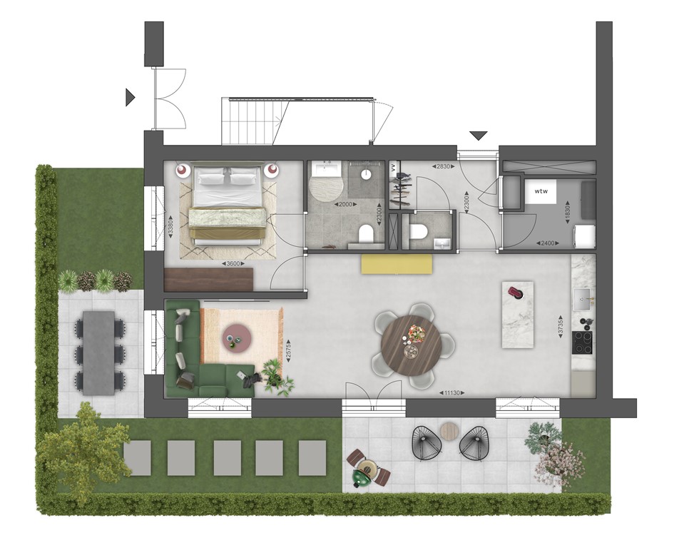 De appartementen hebben een lichte woonkamer met open keuken, één slaapkamer, toilet en een complete badkamer. Via de woonkamer stap je zo je eigen buitenruimte op: een terras van circa 6 m², met keuze uit verschillende zonliggingen. Hier woon je rustig en groen, terwijl het centrum van Groningen eenvoudig per fiets bereikbaar is. Een slimme woonkeuze voor wie mobiliteit, comfort en gemak belangrijker vindt dan een auto voor de deur.