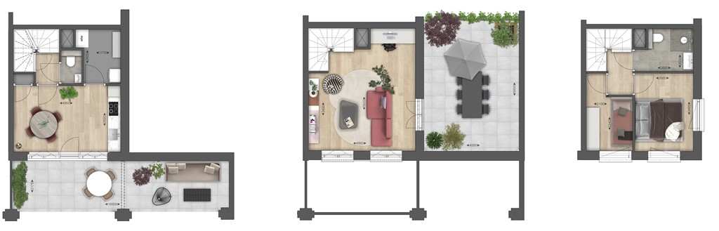 De rijwoningen S vormen het kloppend hart van het hof in fase 2. Met een eigen voor- en achtertuin woon je hier heerlijk groen, terwijl de stad altijd dichtbij blijft. Deze woningen zijn ideaal voor wie ruimte zoekt, maar de stedelijke dynamiek niet wil missen.