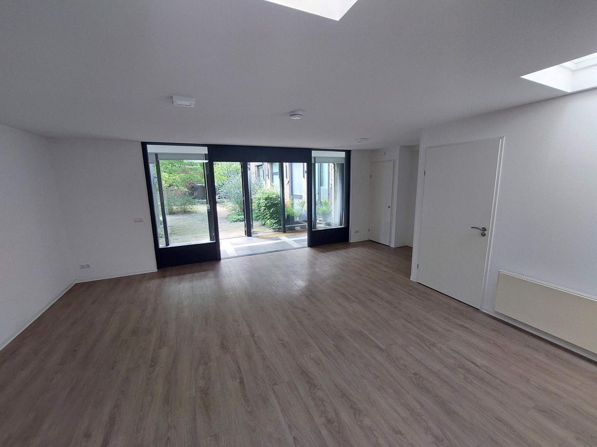 Via een eigen entree aan de zijkant van het gebouw (het monumentale voormalige raadhuis van Vries) loop je door de gezamenlijke tuin en het privé terras (op west) naar de voordeur. Je komt binnen in de serre/wintertuin, die groot genoeg is om er bijvoorbeeld een heerlijke werkplek, leeshoekje of groene oase (of alle drie!) te maken. De serre sluit aan op de zeer ruime woonkamer, waar je met gemak een ruime zithoek én een ruime eethoek kunt plaatsen. Als je met room-dividers werkt is het zelfs ruim genoeg om een slaapgedeelte te creëren.
