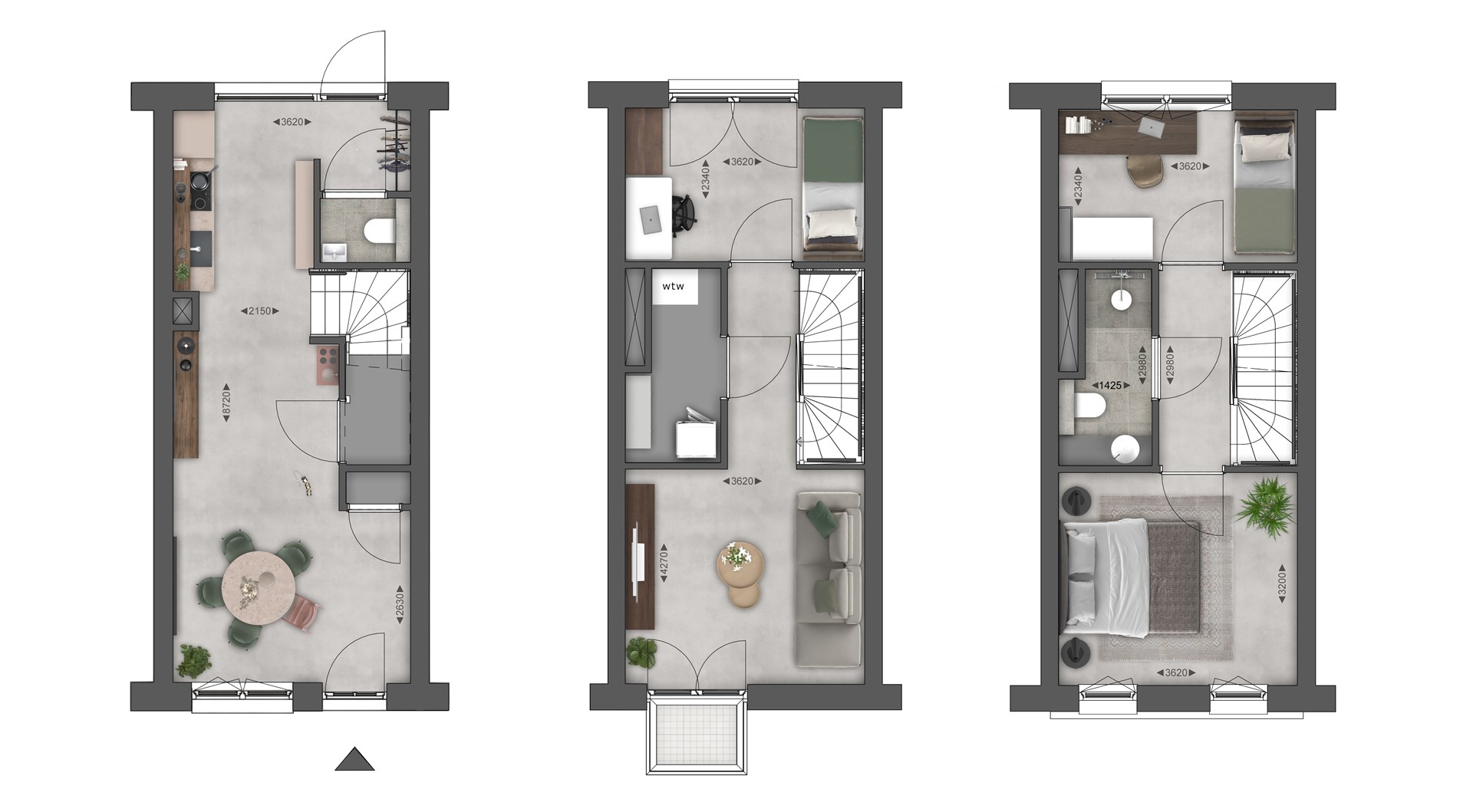 De rijwoningen S vormen het kloppend hart van het hof in fase 2. Met een eigen voor- en achtertuin woon je hier heerlijk groen, terwijl de stad altijd dichtbij blijft. Deze woningen zijn ideaal voor wie ruimte zoekt, maar de stedelijke dynamiek niet wil missen.