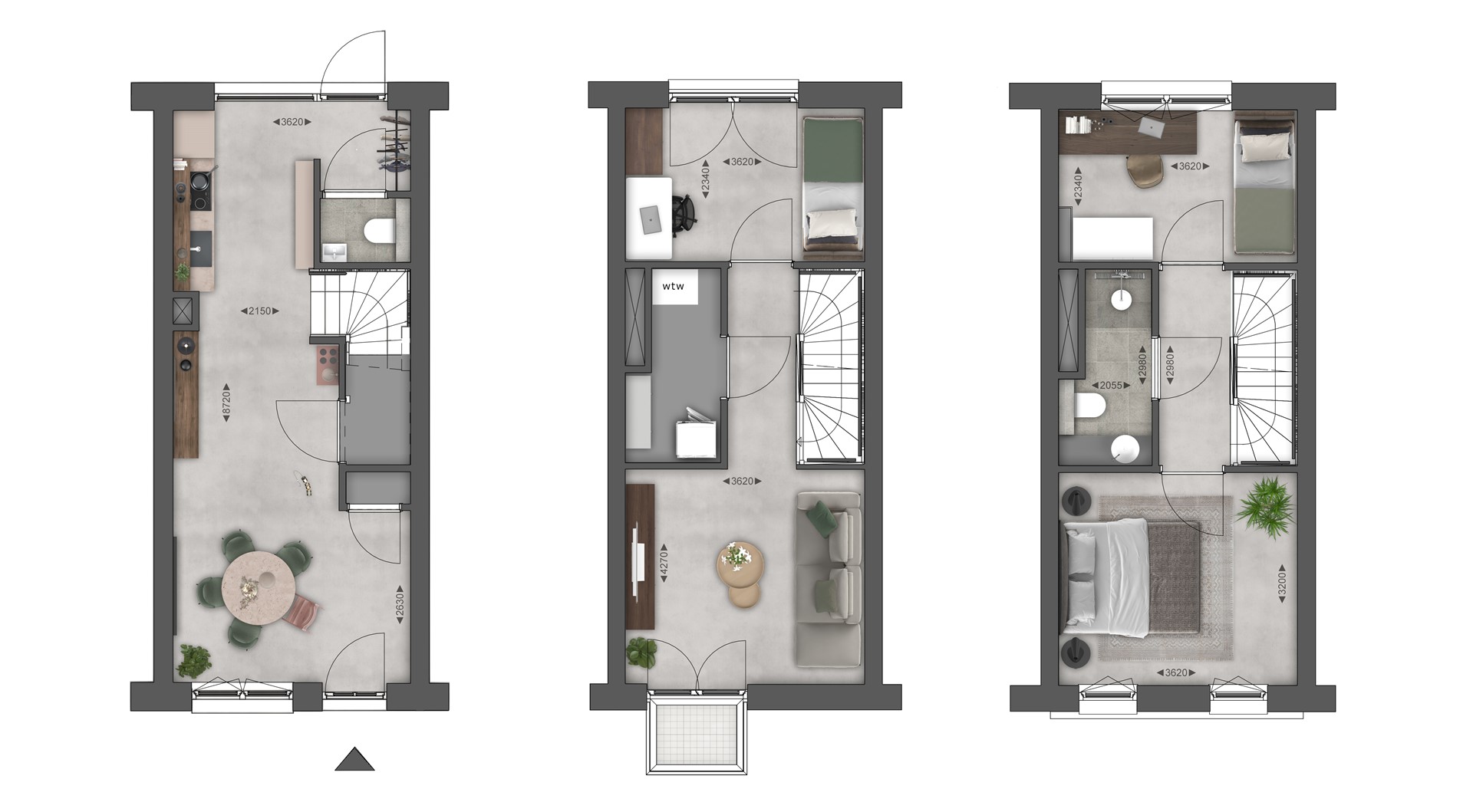 Met woonoppervlaktes van circa 96 m2 en drie slaapkamers bieden deze woningen volop mogelijkheden voor gezinnen, thuiswerken of logees. De indeling is praktisch en licht, met een fijne verbinding tussen binnen en buiten. Een woning die met je meegroeit, in een omgeving die elke dag prettig aanvoelt.