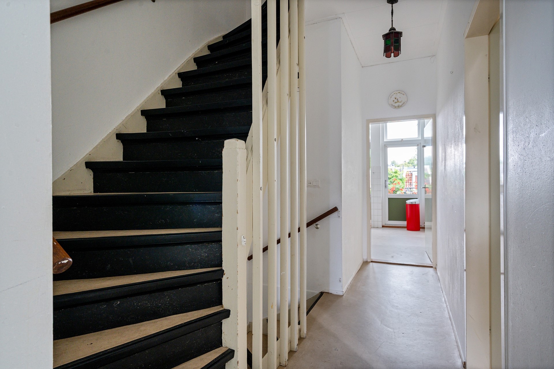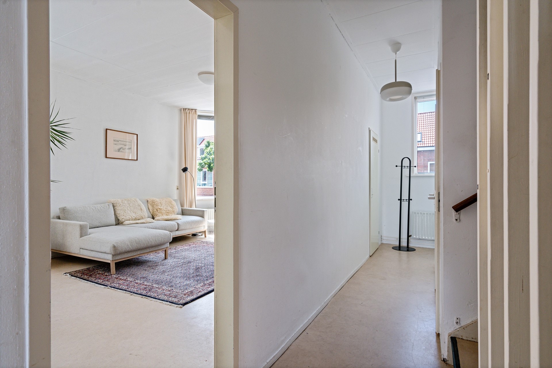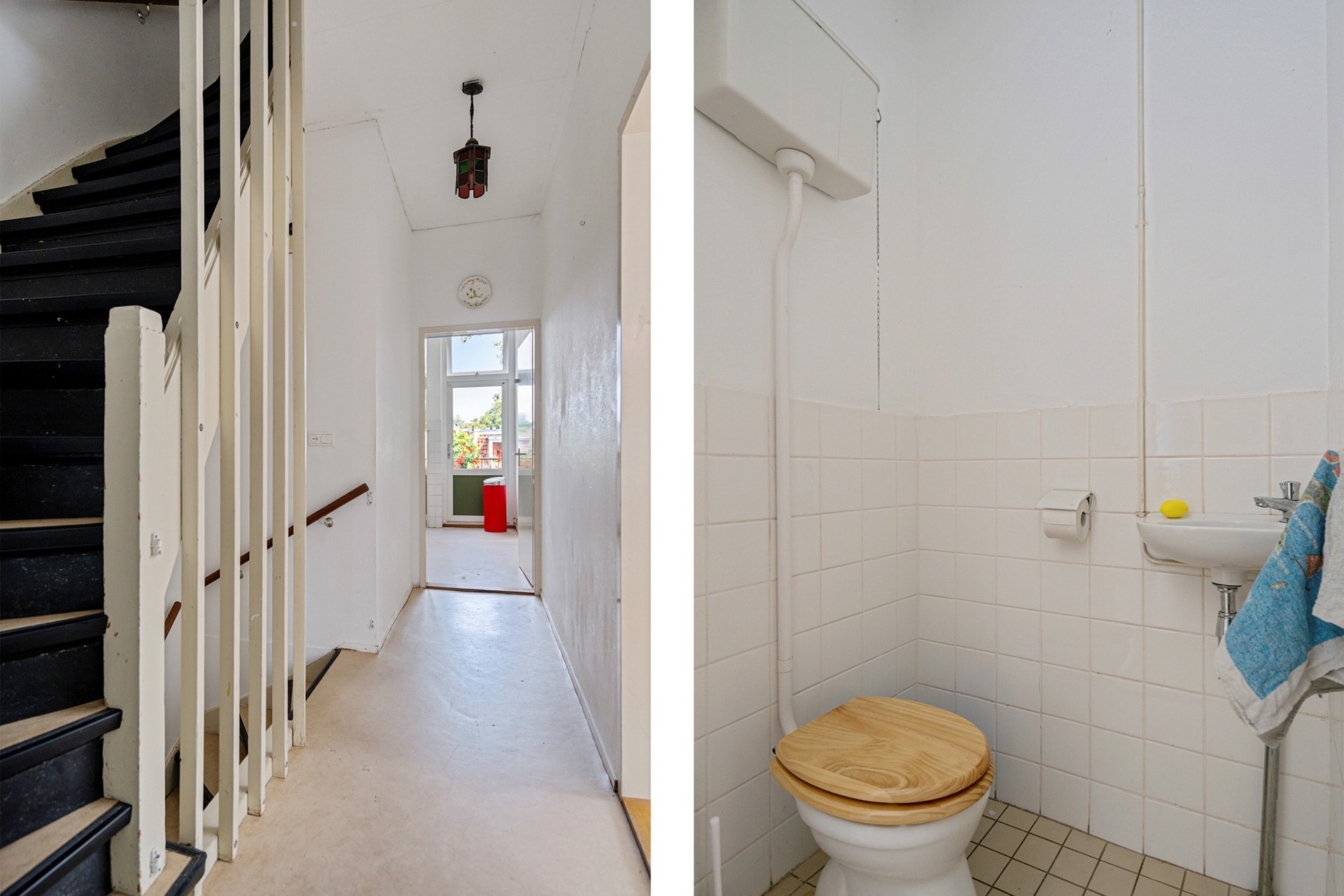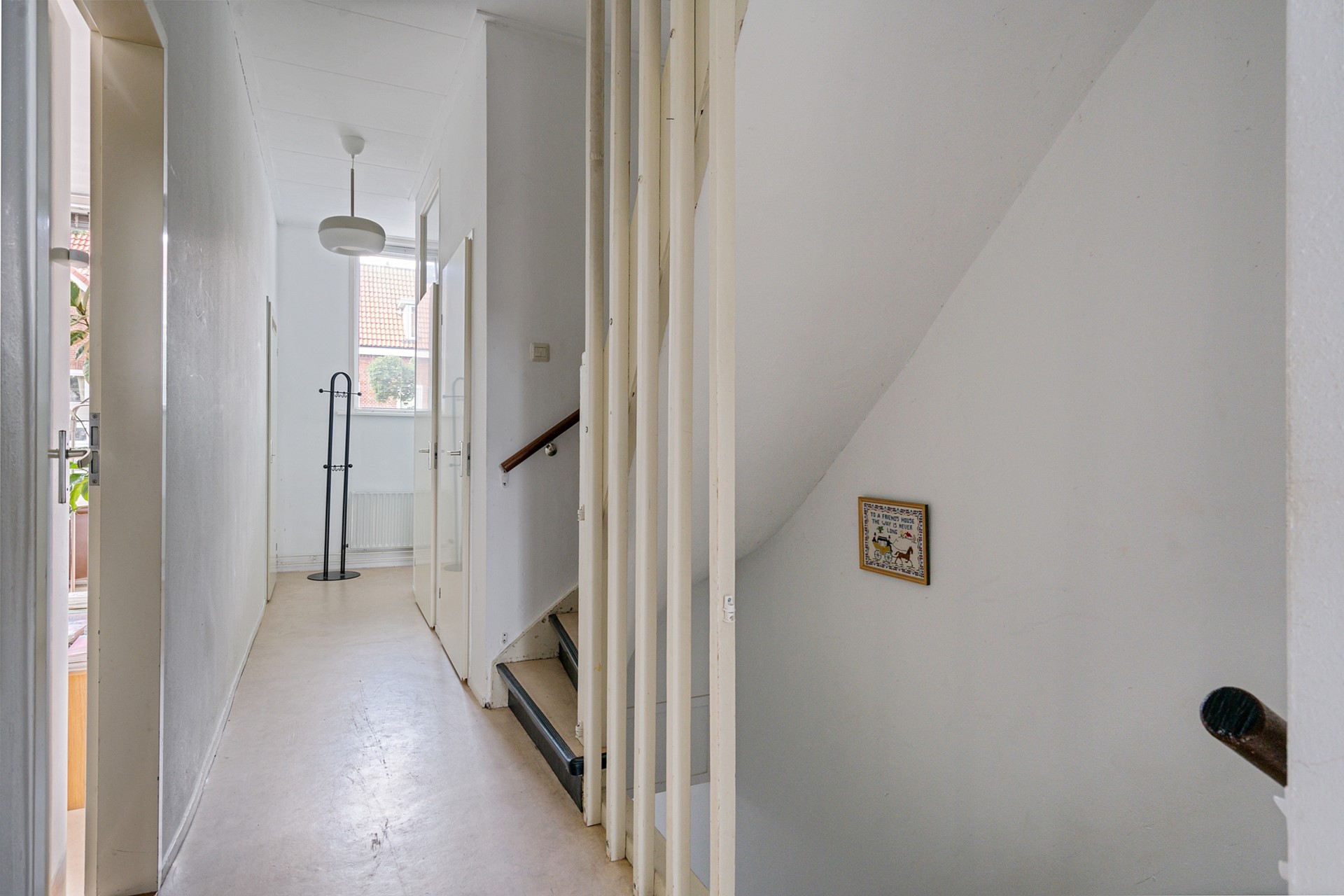 Je komt aan in de rustige straat en stapt je eigen voordeur binnen. In de hal is voldoende ruimte voor een fiets. Trap op naar de woonverdieping.