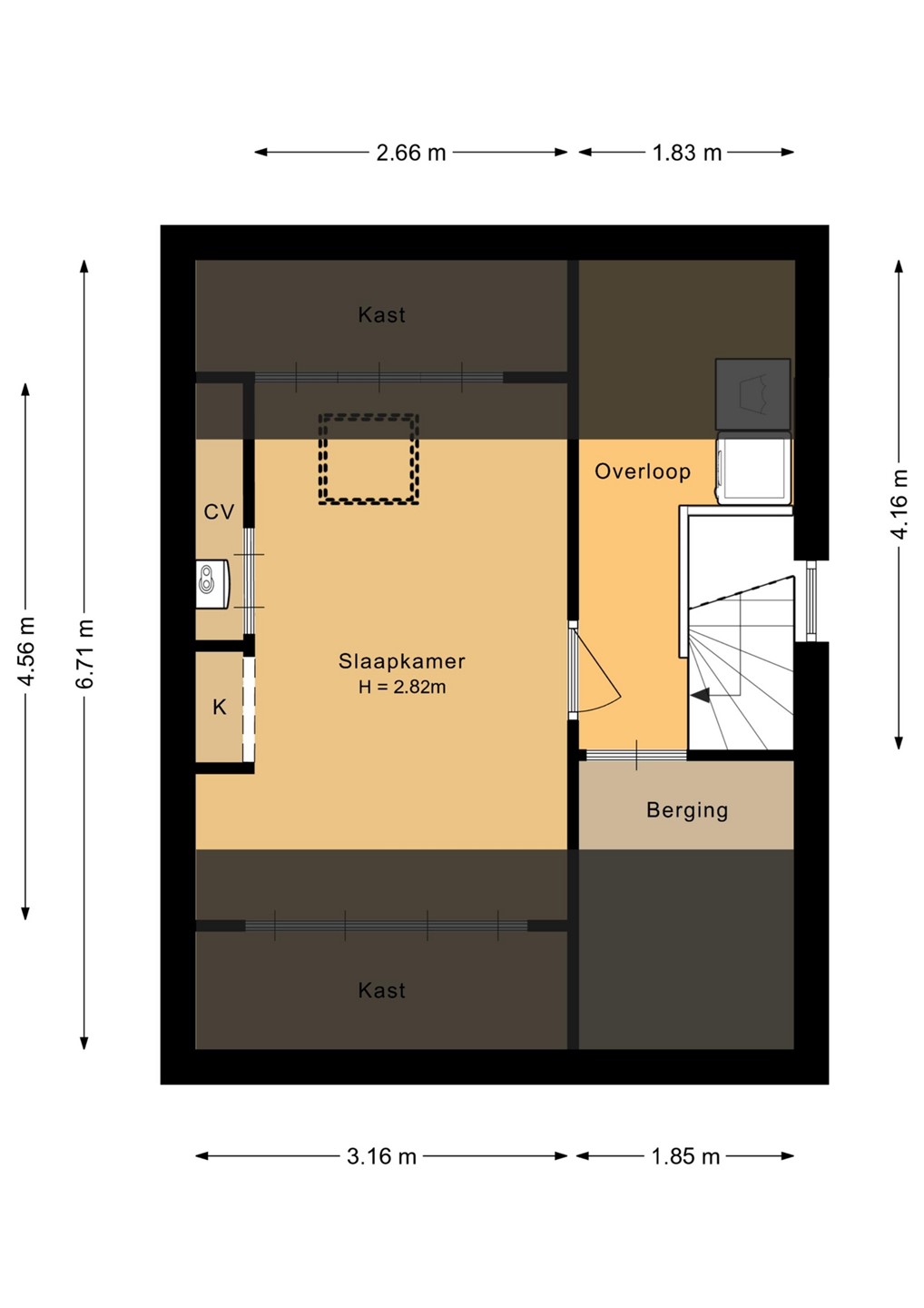 Overloop met bergruimte, wasmachine aansluiting en toegang tot de vierde slaapkamer van ca. 14,5 m².
