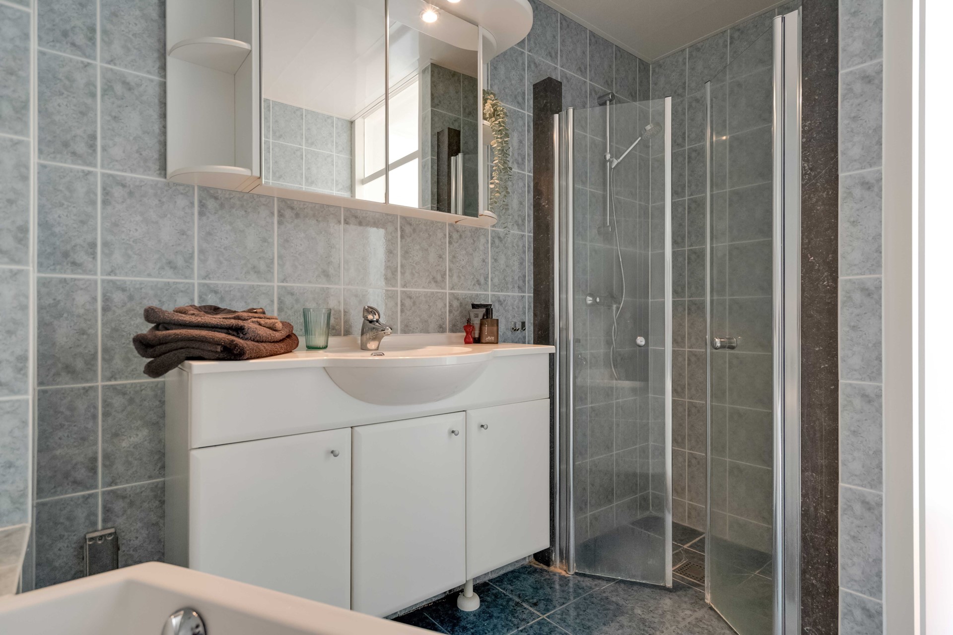 • Badkamer met ligbad en aparte douche