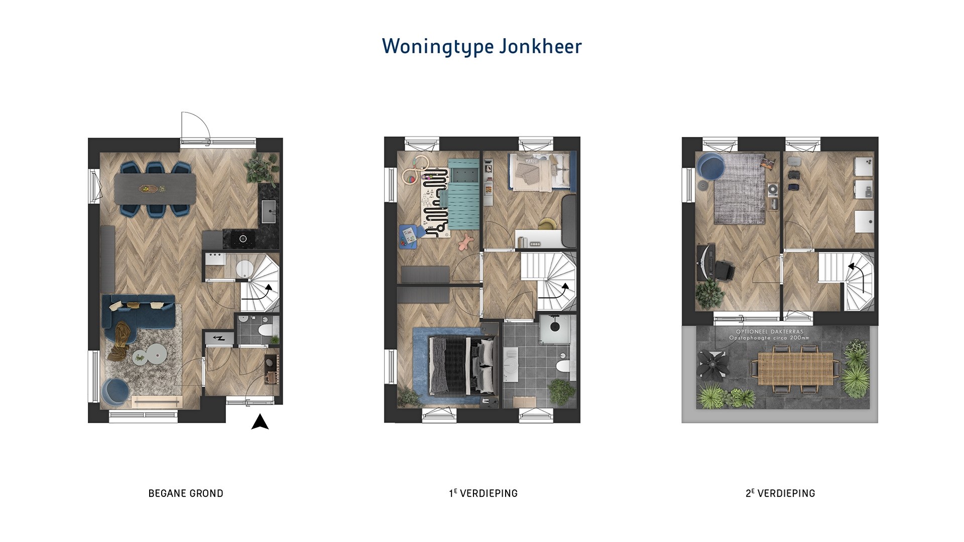 Met diverse kopersopties, zoals een uitbouw van 1,2 of 2,4 meter en de keuze voor openslaande deuren of een schuifpui, maak je van woningtype Jonkheer een woning die helemaal aansluit bij jouw woonwensen.
