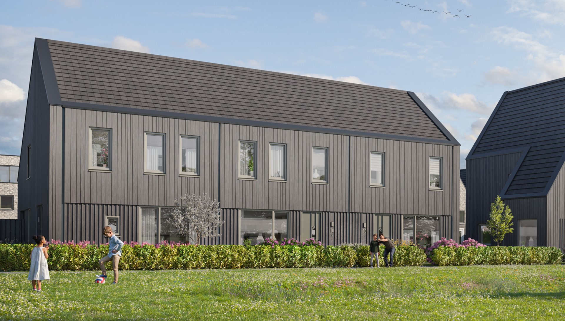 Woningtype Maarschalk in Wolderburght is een fijne gezinswoning met een robuuste uitstraling. De moderne schuurwoning architectuur, uitgevoerd in zwart hout, geeft deze woning een krachtig en stijlvol karakter dat direct opvalt in het straatbeeld.
